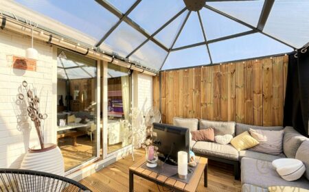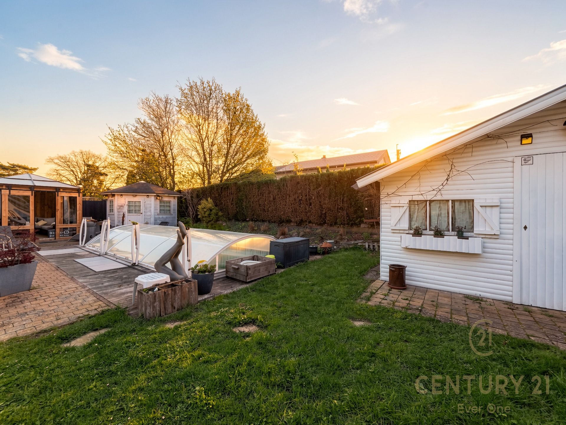 À l’extérieur, un cadre particulièrement agréable avec un beau jardin, une piscine parfaite pour les beaux jours, ainsi qu’une extension sous forme de véranda, idéale pour se détendre en toute saison.